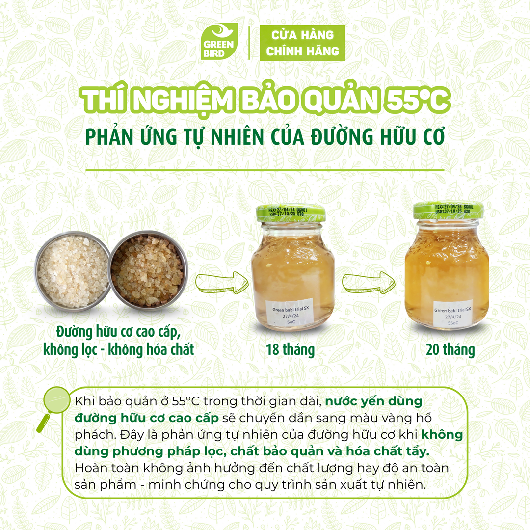 - Đặc biệt không gây sâu răng vì sử dụng Yến sào và đường hữu cơ đạt chứng nhận EU và USDA Hoa Kỳ từ mía trồng tự nhiên, không hóa chất.